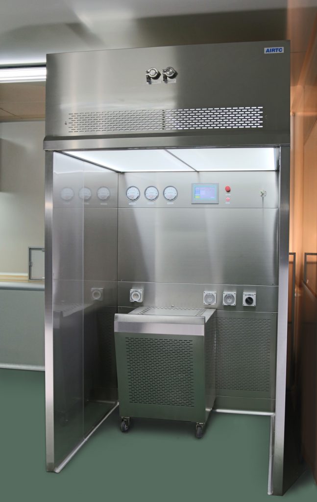 负压称量罩是一种专门用于制药净化车间、微生物研究和科学实验等的局部净化设备。它提供一种垂直单向气流,此洁净气流一部分在工作区循环、一部分排出至周围区域,从而形成相对与外部环境的负压,从一定程度上保证了此区域内的粉尘不会扩散至室外,起到保护外部环境、防止交叉污染的作用。常用于保证工作区的高洁净度环境。